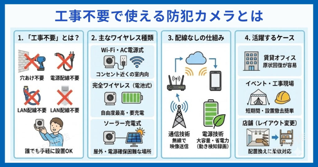 仕事で使う場合、工事不要カメラが特に向いているのはこんなケースです。
